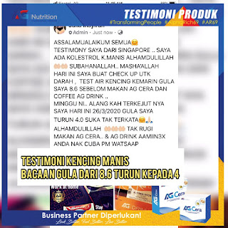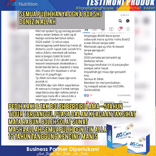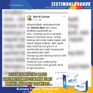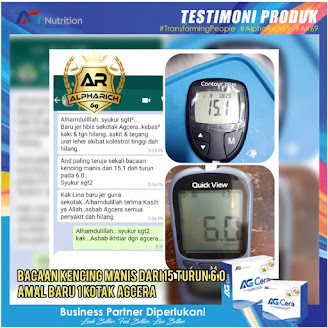 Testimoni diabetes dan selaput mata Operstion 2 kali masih tak ok Selepas amal agcera 2-3 kotak Alhamdulillah sembuh Urat mata dah ok